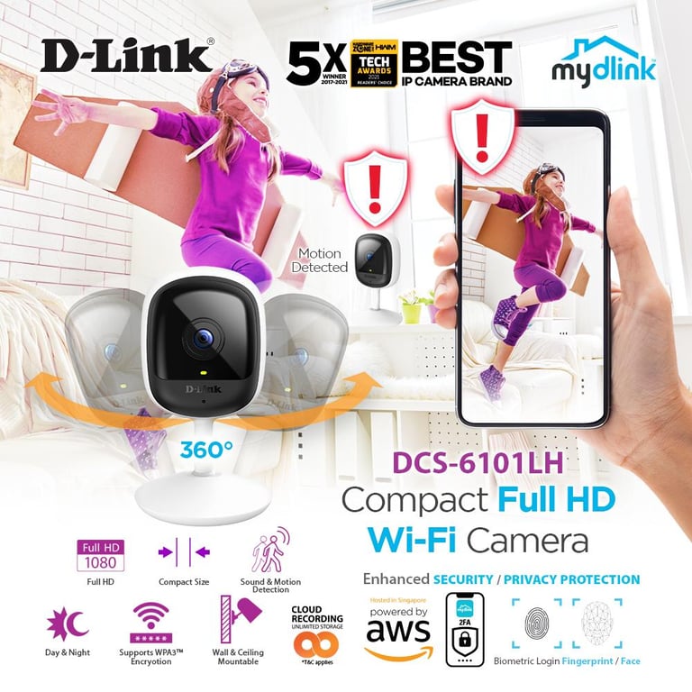 D-Link DCS-6101LH Wide-angle 110° FOV Compact Full HD Wi-Fi Smart Camera