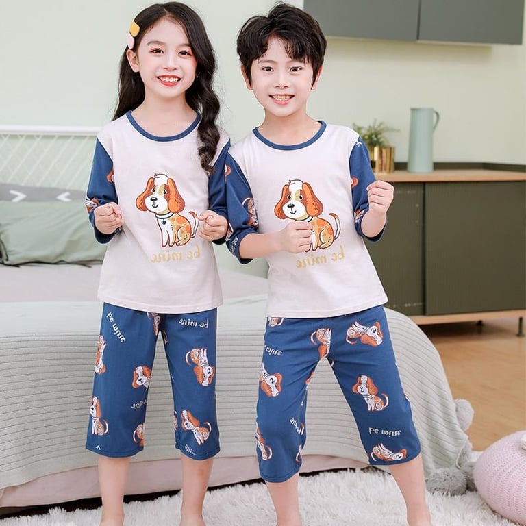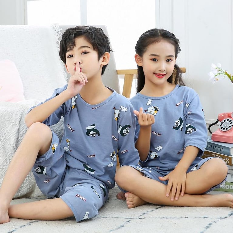 Children's Pajamas 3 Thin 4 Girls Boys 5 Summer 6 Cotton 7 Baby 8 Cute Baby Summer Ten-Year-Old Homewear Suit