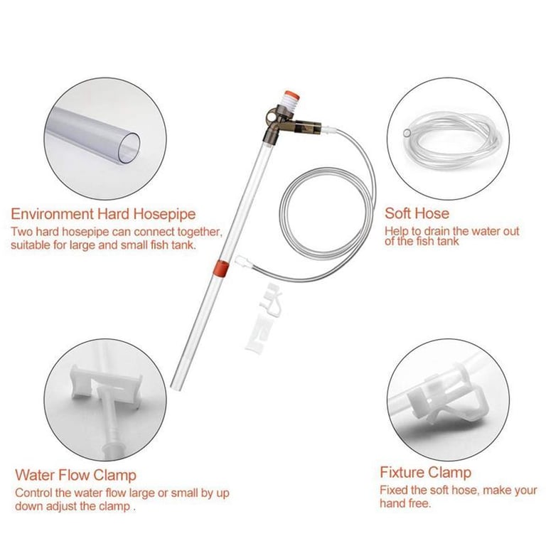 Suitable for aquarium Height:Aquarium water changer Max Height is 35 inch.Environment-friendly material,it is easy to clean the dirt at the bottom of the fish tank.It would help you clean the tank easily.