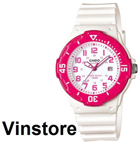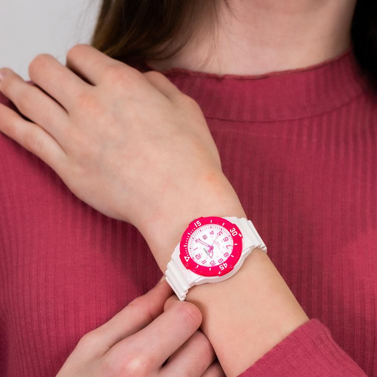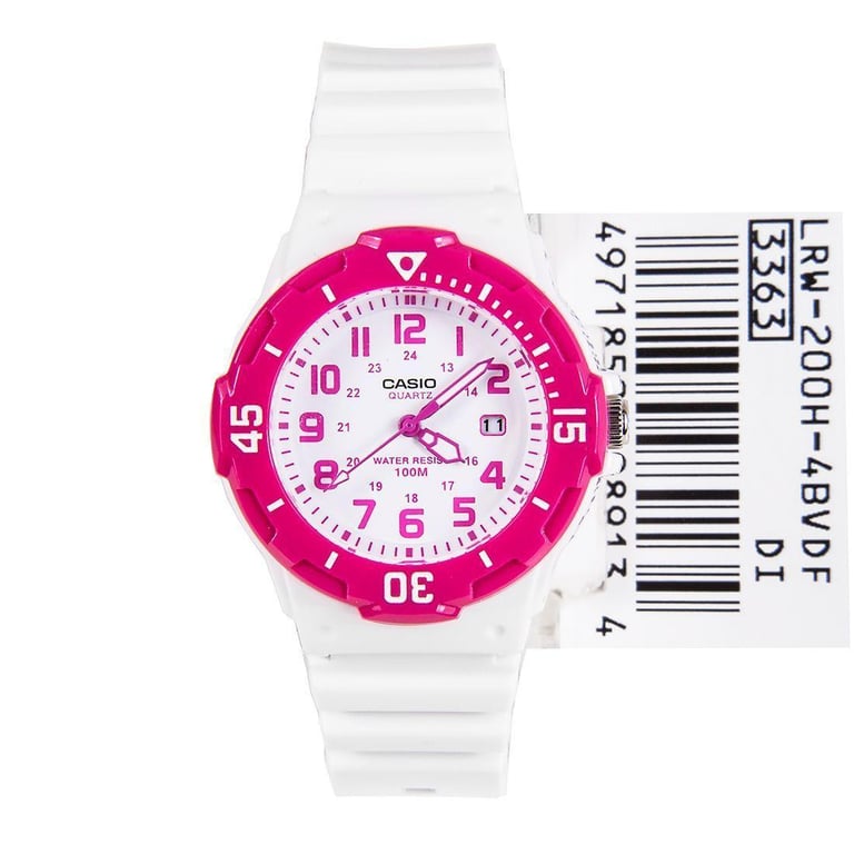 [Vinstore] Casio LRW-200H Diver's Style White Resin Pink Bezel Analog Quartz Kids Women Watch LRW200H-4B LRW-200H-4B