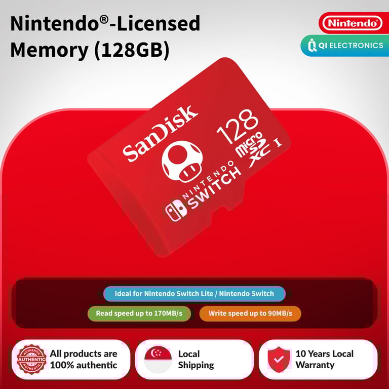 SanDisk Nintendo Switch microSD Card 4k U3 V30 UHS-I C10 100MB/s Read Speed 90MB/s Write Speed 64GB 128GB 256GB 512GB QXAT QXAO 12BUY.MEMORY