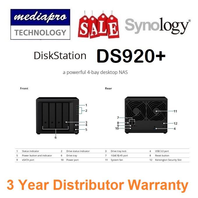 SYNOLOGY DS920+ 4 Bay DiskStation NAS (Enclosure). Singapore Local 3 Years Warranty **SYNOLOGY OFFICIAL PARTNER**. DS920+