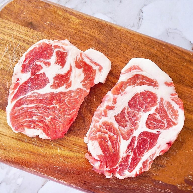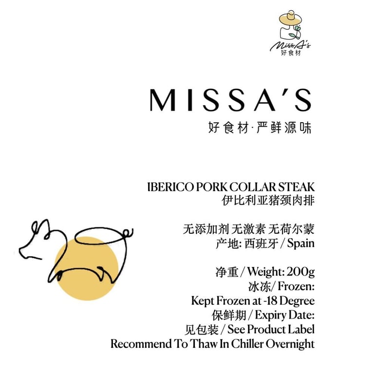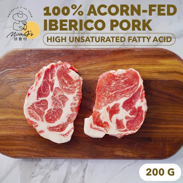 Iberico Pork Collar - 2pc/pckt 伊比利亚黑猪颈肉排 无添加 无抗生素 无生长激素 自然饲养 产地: 伊比利亚/ Iberico Grain-Fed 谷饲 净重 / Weight: 200g 冷藏食用 / 0-3 degree: 7 天/Days 冰冻保鲜期: 生产日期后6个月 Kept Frozen at -18 Degree: 6 Months from Production Date No add-up. Suitable for grilling or other ways of cooking. 无调味,保留自然风味。适合烧烤及其他烹饪方式。 Miss A’s Handpick Fine Food Delivery Schedule: (1) Order paid on Monday to Thursday- Before 4pm —> Next day delivery between 4-7pm- After 4pm —> 2 Days later between 4-7pm (2) Order paid on Friday- Before 4pm —> Saturday delivery between 4-7pm- After 4pm —> Monday delivery between 4-7pm (3) Order paid on Saturday & Sunday —> Delivery on Tuesday between 4-7pm (4) Ordered Paid on Public Holiday —> 2 Days later between 4-7pm * Delivery schedule above reflects Earliest Day of Delivery * We will follow the delivery schedule, unless a later date is requested in the remark after order is placed