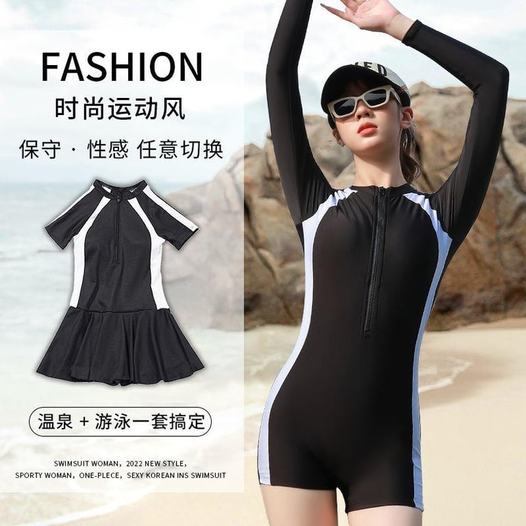 Sports one-piece adult swimsuit female 2022 new large size short-sleeved conservative cover belly quick-drying hot spring vacation swimwear swimming suits for women swimwear swim suit set dress pants on sale