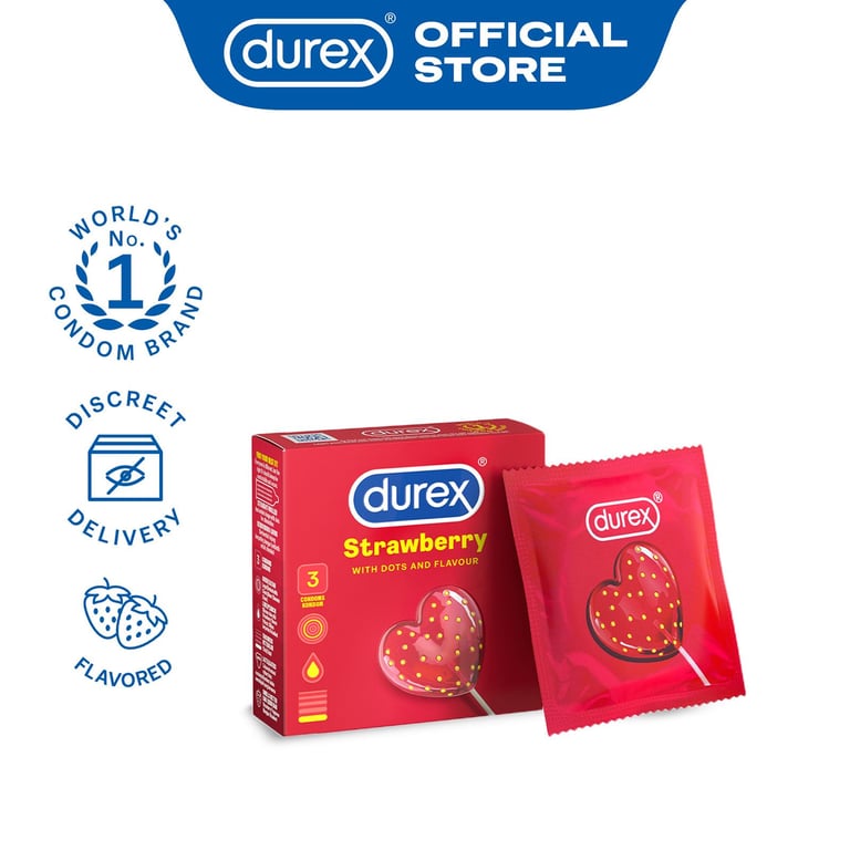 Experience Durex's new range of sensually flavoured condoms designed to take her for an adventure.[Benefits of Durex Strawberry Condom]• Dotted condom to provide additional stimulation• Pink coloured, lubricated condom with strawberry flavour for a little sweetnees• Shaped with a straight wall and teat end to provide a better fit during sex• Nominal width 53mm with slightly thicker to provide extra reassurance• 100% electronically tested with 5 more quality tests carried out on every batch#Durex #Condom #Condoms #Lubricant #Lube #Gel #Durex condoms #Durex Lube #Durex gel #Durex play #Durex Strawberry #Durex Chocolate #Strawberry #Chocolate