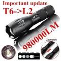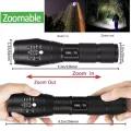 Switch Type: ClickSwitch location: tail capBrightness:about 980000LMDimension (Lx Head D x Body D):5.31x1.37x1.1 inch/13.5x3.5x2.8cmSuitable for hunting, cycling, climbing, camping and outdoor activities,daily use,etc.Package:1x Cree XML T6 LED Flashlight