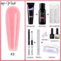 package includes: 9Pcs/set (Brush+ Extension Glue + Clean Water +Matte Strip + Nail Mold+Nail Clips+Nail Dryer+Top+Base Coat)