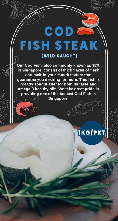 Our Cod Fish, also commonly known as 鳕鱼 in Singapore, consist of thick flakes of flesh and melt-in-your-mouth texture that guarantee you desiring for more. This fish is greatly sought after for both its taste and omega 3 healthy oils. We take great pride in providing one of the tastiest Cod Fish in Singapore.
