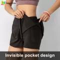 1.High Elasticity: Elastic waistband, fits your body perfectly. 2.Comfortable: Double layer lightweight fabric, breathable and quick-dry, comfortable to wear. 3.With Phone Pocket: There is a pocket on the inner layer that allows you to store your phone, light and sporty. 4.Sports Shorts: perfect for yoga, running, cycling, bike, relaxing or everyday womens casual shorts. 5.Lightweight: fast drying and moisture-wicking. lets you move freely as you run, jump, twist and bend.