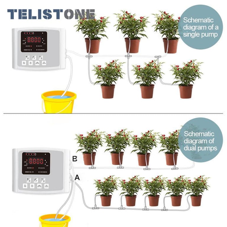 \n1. Automatic Drip Irrigation System - Set up the drip watering schedule on the timer with an LCD digital display, you can set the multi-task Watering Time and Watering Duration per time, and support Interval Cycle Days to water your plants worry-free and effortlessly.