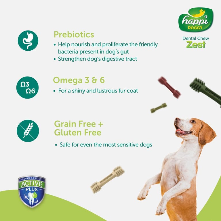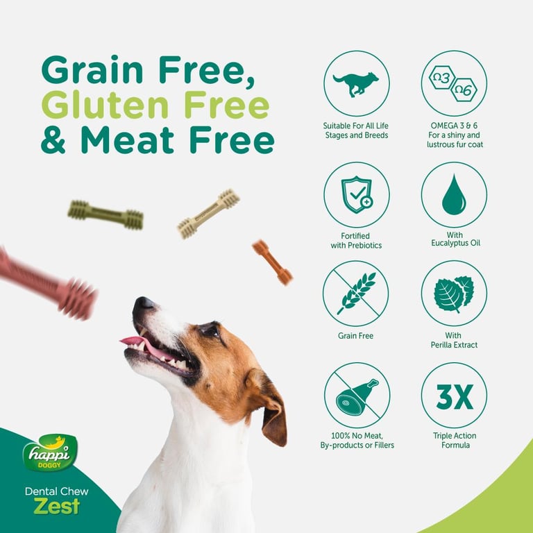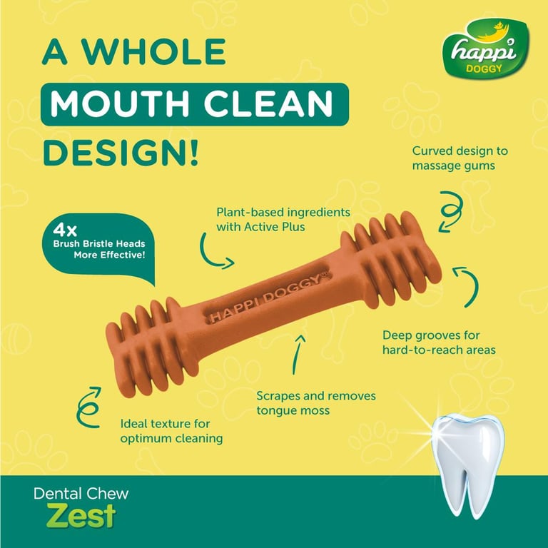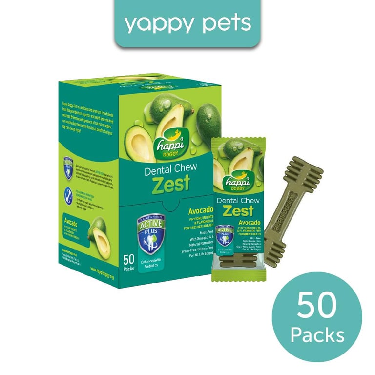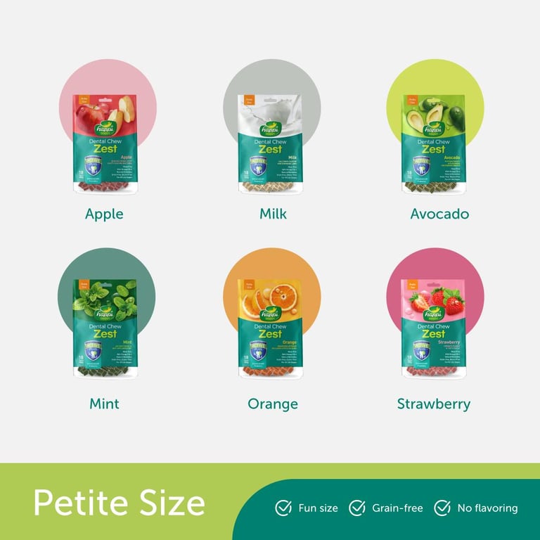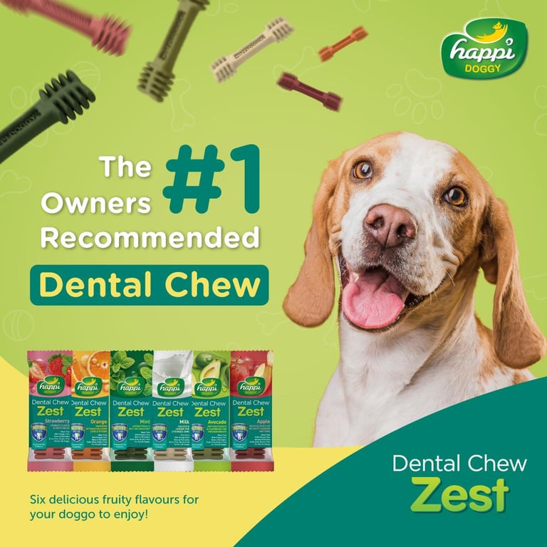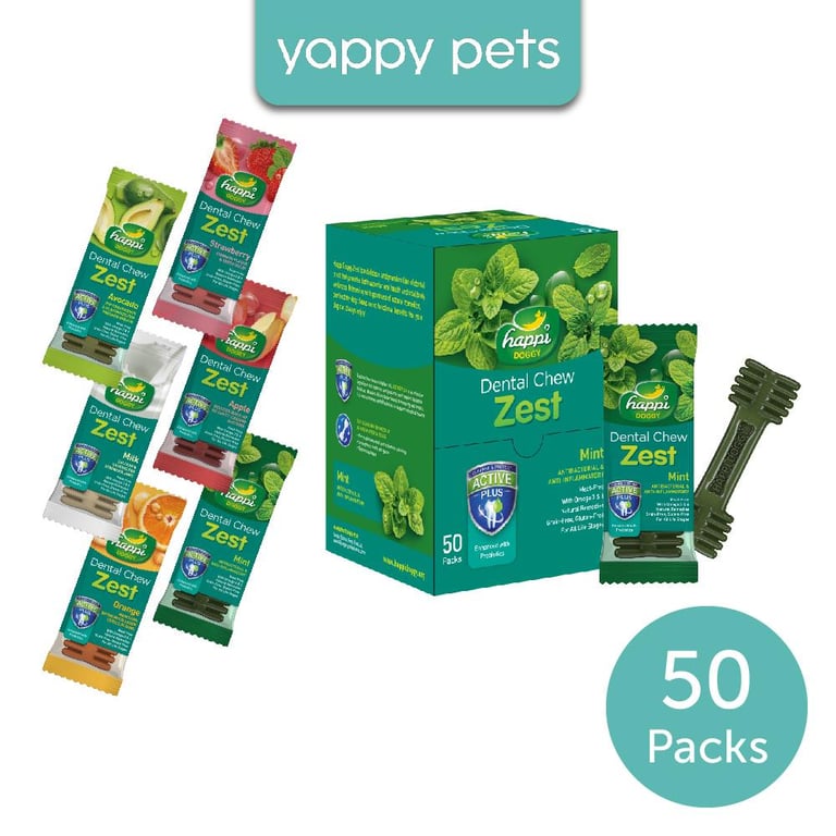 Happi Doggy Zest Regular 4-Inch Dental Chew (25g x 50) | Dog Treats, Carton Deal, Strawberry Mint Apple Milk Orange Avocado