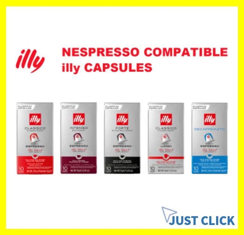 Welcome to Just ClickPRODUCTFor Nespresso®** Original coffee machines (not compatible with Nespresso Virtuo)CLASSICO Espresso - 5.7g x 10 CapsulesClassico, classic roast coffee has a lingering sweetness and delicate notes of caramel, orange blossom and jasmine.FORTE Espresso - 5.7g x 10 CapsulesForte, extra bold roast coffee has a enduring richness with notes of dark chocolate and an intense aroma of toasted bread.INTENSO Espresso - 5.7g x 10 CapsulesIntenso, bold roast coffee has a pleasantly robust finish, with warm notes of cocoa and dried fruit.CLASSICO Lungo - 5.7g x 10 CapsulesThis medium coffee is beautifully balanced with tasting notes of caramel, orange blossom and jasmine with a subtly sweet aftertaste.Decaffeinato - 5.7g x 10 CapsulesDecaffeinated roast coffee has a smooth and mild taste, with less than 0.1% caffeine. It achieves a perfect balance between acidity and bitterness, with delicate notes of caramel, chocolate and toasted bread, with a sweet aftertaste.