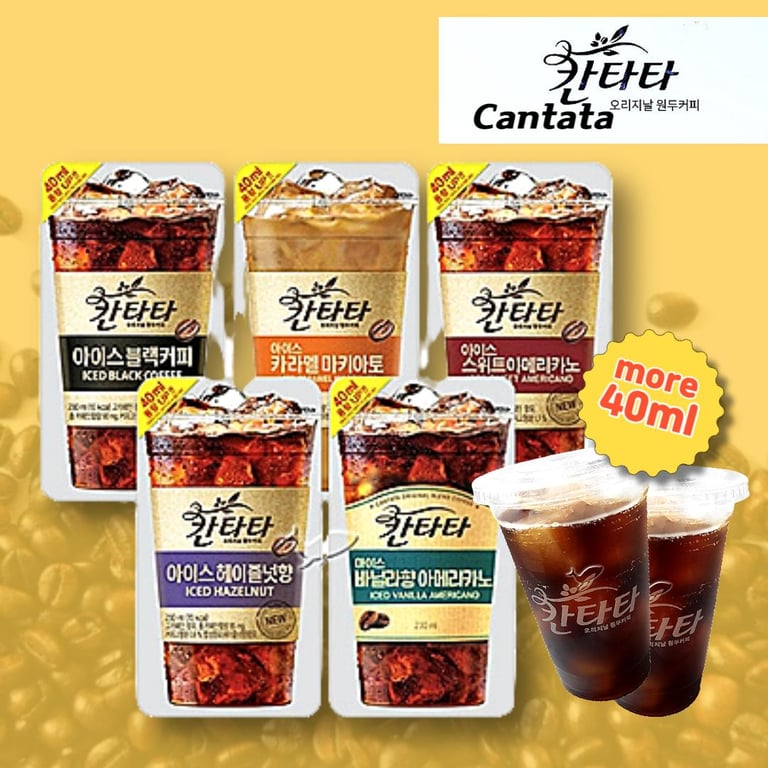 Lotte Cantata Pouch Coffee 230ml Portable Coffee Americano Hazelnut Caramel Macchiato