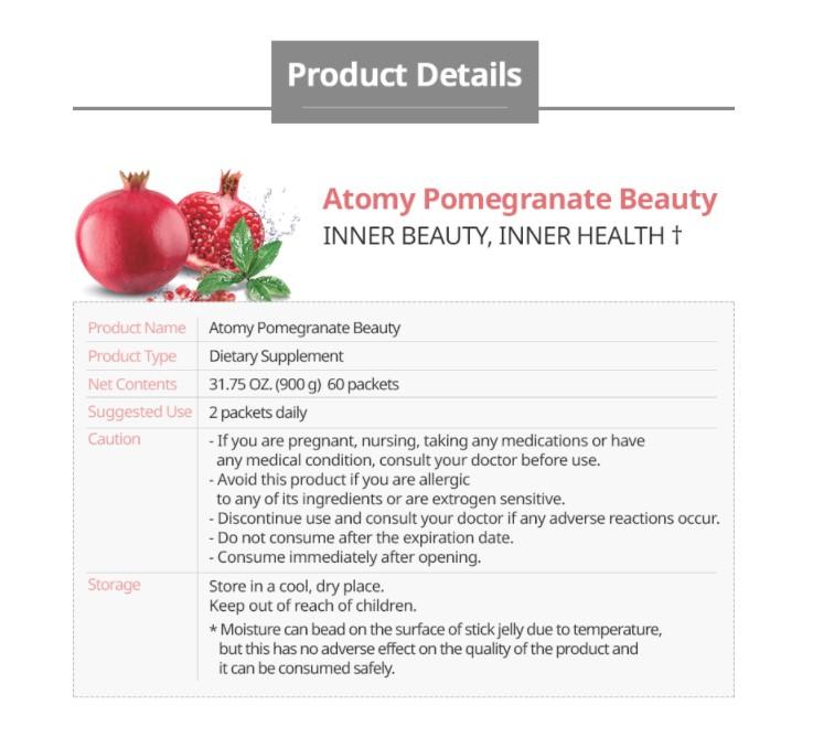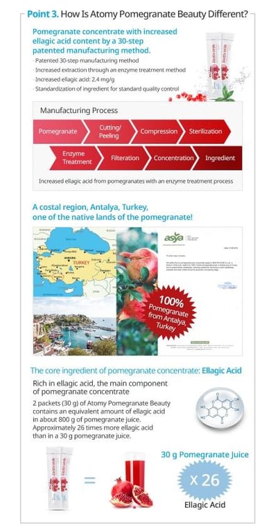 \n\nATOMY POMEGRANTE has equal Ellagic Acid to 26 CUPS of Pomegranate juice!