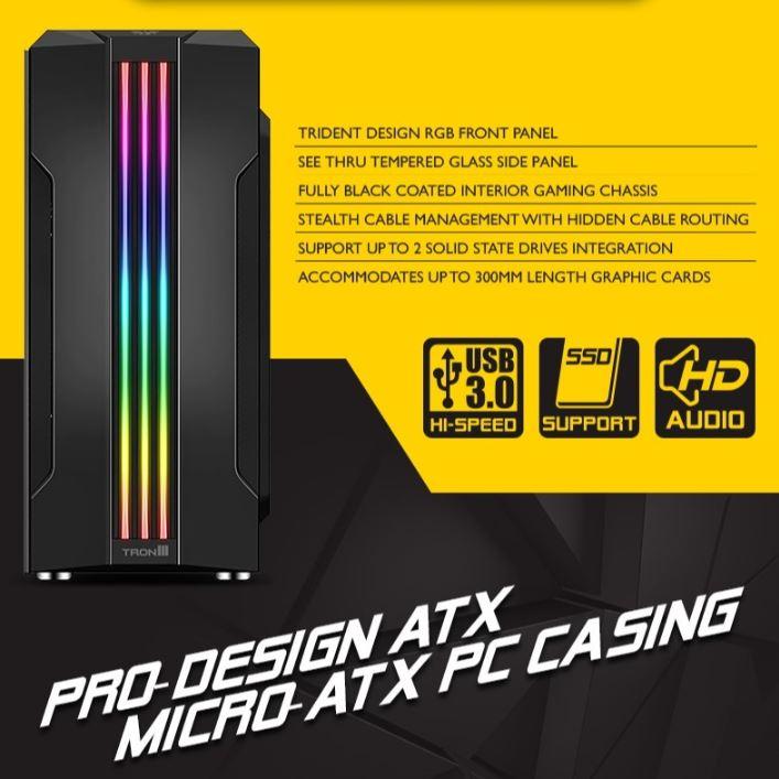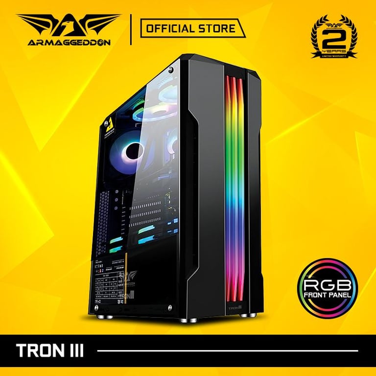 Armaggeddon Tron III Pro Design ATX Gaming PC Case with Tempered Glass Side Panel Design [Free PC Cooling Fan]