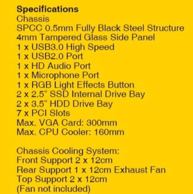 - - Rear Support 1 x 120mm Exhaust Fan (Fan Not Included)