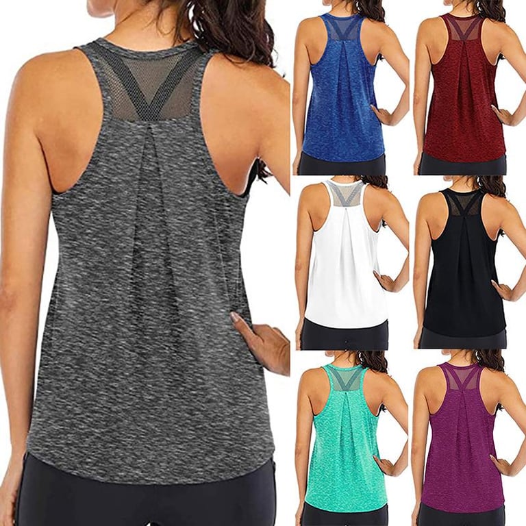 Features:Women Workout Vest Loose Fit Racerback Tank Tops Mesh Backless Vest Running Tank Tops