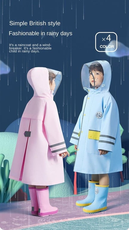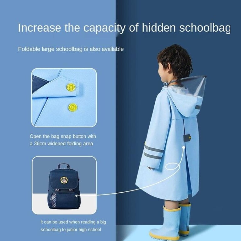 Kocotree New children's raincoats solid color raincoats raincoats with schoolbags raincoats for boys and girls outdoor raincoats