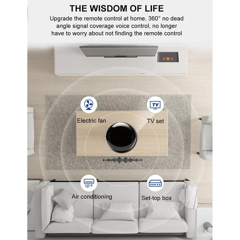 🌐Replace all your remotes with your smartphone, The all in one infrared remote control is used to activate infrared devices such as air conditioning, TV, fan, DVD, STB and so on, through the remote controller for Smart-IR (only supports for IR (38KHZ), excluding for RF).