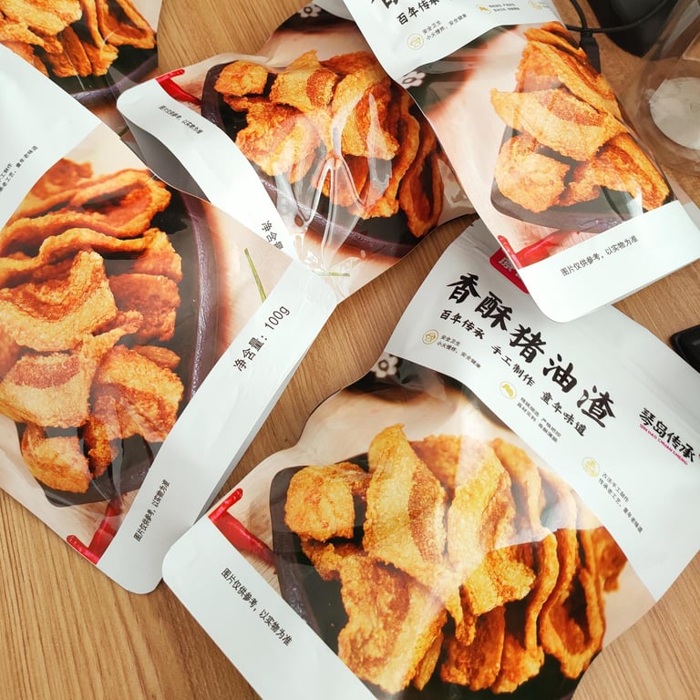 Lard residue snacks, dried pork cooked pork crispy skin, pork belly, specialty net red snack fried food 50g, 100g, 200g