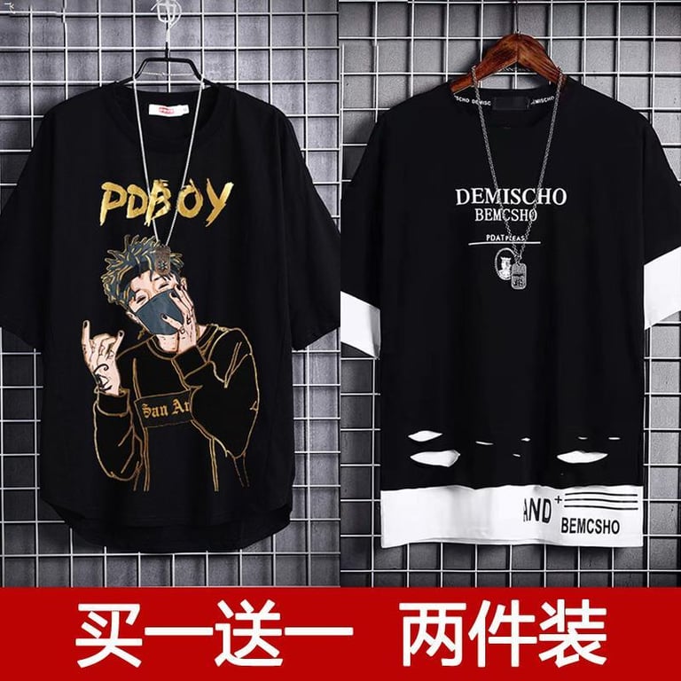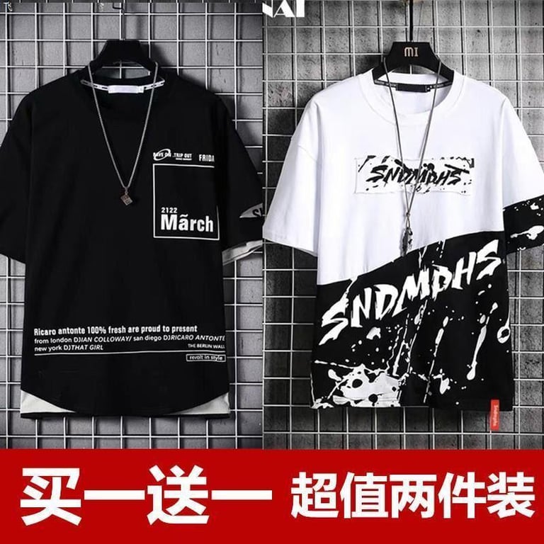 Buy One Get One Free Men's Short Sleeve T-shirt 2021 Summer New Fashionable Loose Half Sleeve Fashion Brand Thin Men's Clothes
