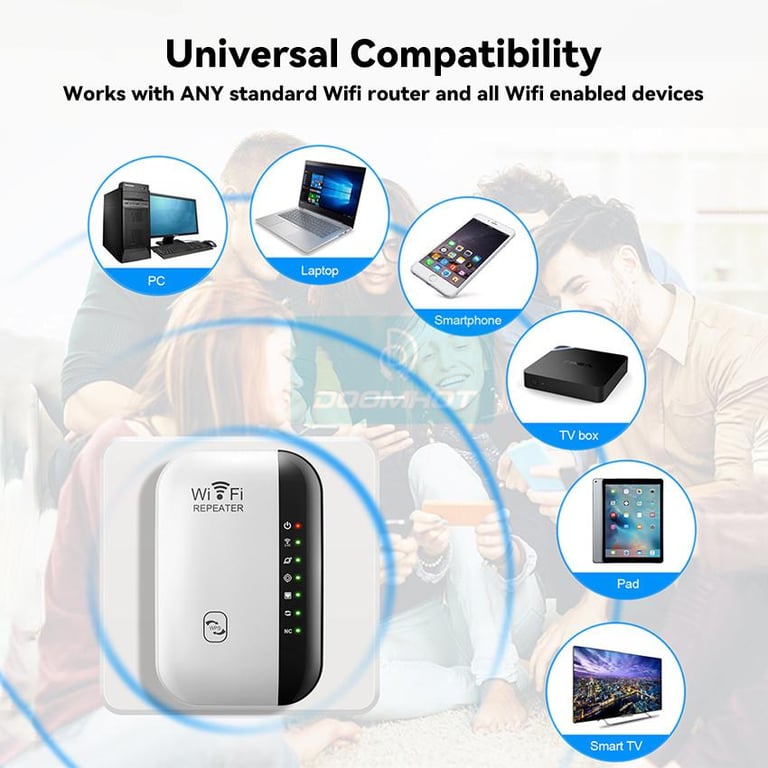 - Universal Compatibility: This WiFi Extender Compatible with 802.11N/B/G ,can work with any wireless network, router and Wi-Fi enabled devices., what means it works with any standard router or gateway.