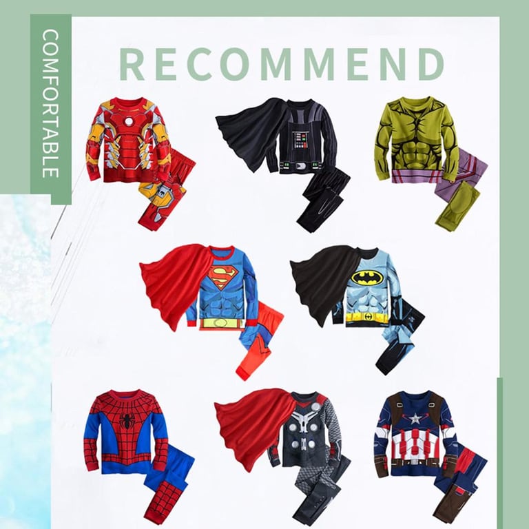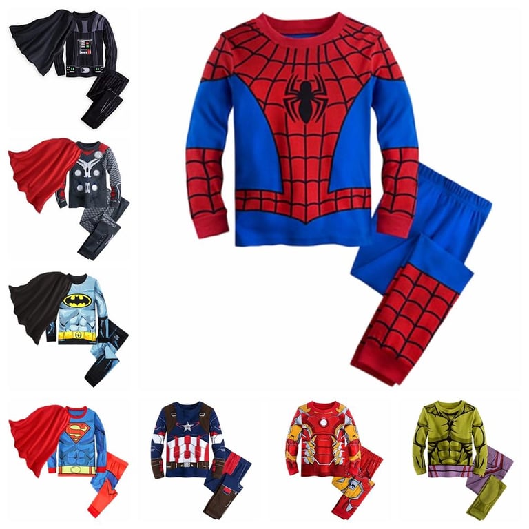 Kids Boys Pajamas Set Sleepwear Homewear Long Sleeve Outfits Suit Superhero Character Party Cosplay Costume Children Clothes Sets 1 to 8 Years