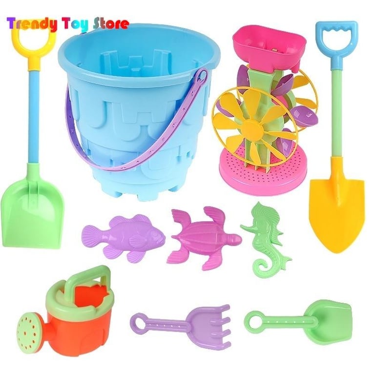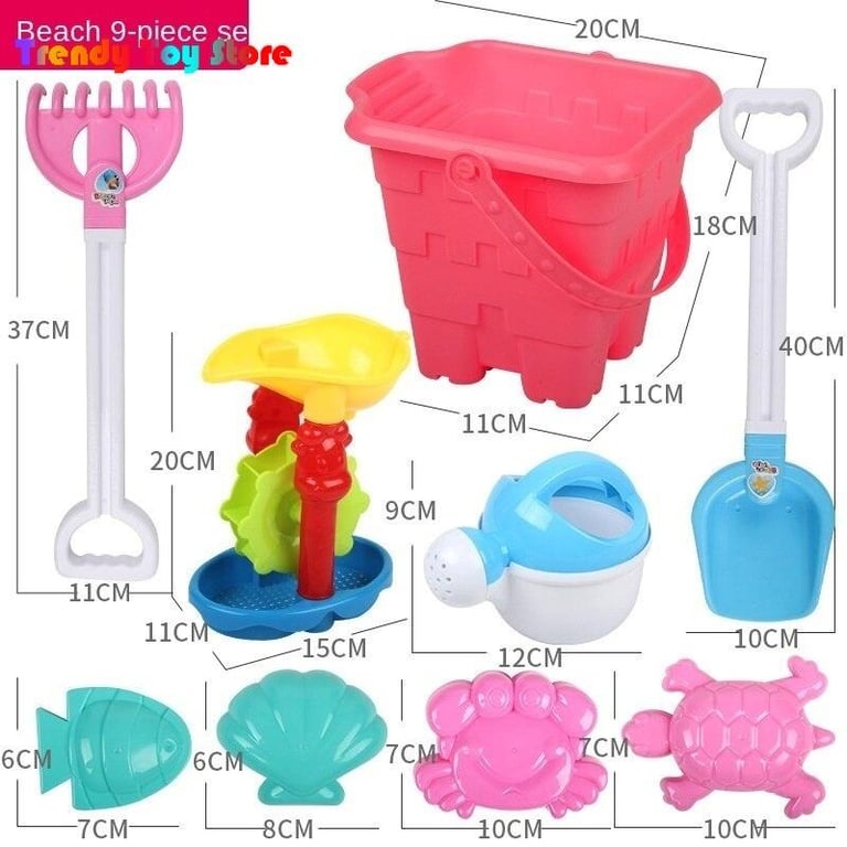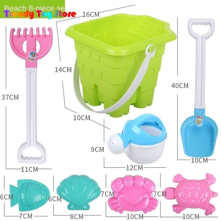 Safe and high quality, very durable Material: Compared to other beach toys, beach toys are made of high quality, soft polypropylene plastic rather than cheap hard plastic. This soft material is extremely durable, resistant to corrosion, soft but powerful, and has no burrs to hurt your hands, providing your child with safer protection. A variety of play: This set of beach toys can be used as a baby bathing swimming toy.They are perfect for your child to play on the beach, in the swimming pool, in the garden or where children love to play. Simple and Fun: Using various beach mold and castle building kit to build your own castle. Cultivate kid’s imagination and creativity. Easy to Carry: Come with a reusable mesh bag and a bucket,put the bag in this bucket,never worry about the sand falling everywhere. Note : 1️⃣ Please remove the adhesive tape, wrapping paper and other labels before handing the product to your baby to ensure your baby's safety. 2️⃣ Do not swallow small items.