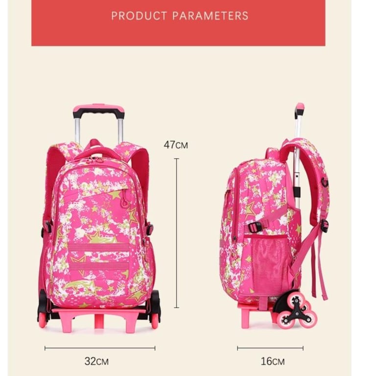 Trolley School Bag Beg Sekolah Roda Beroda Primary Secondary School Bag Troli 2 or 6 Wheel Staircase Backpack Ransel Wheeled Large Size Capacity Kids Gift Present ZR9147