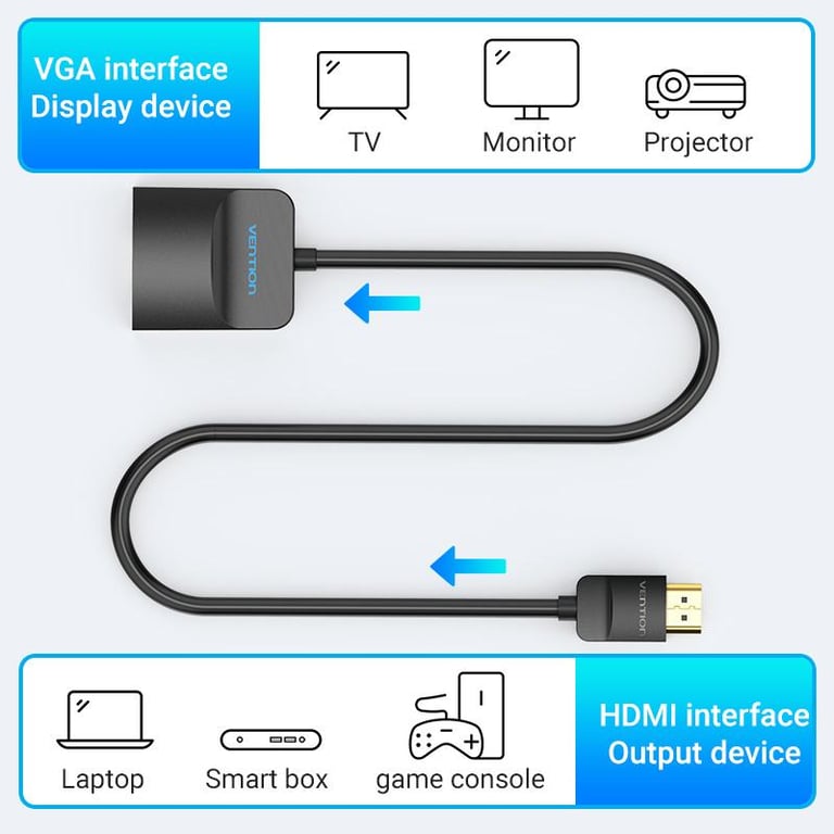 Feature : Make the Signal devices ( HDMI port) shows on the display devices ( VGA Port)Signal Devices: PC/Laptop/Computer / TV BOX / PS3 /PS4, etcDisplay Devices: TV / Projector/Displays / Monitor