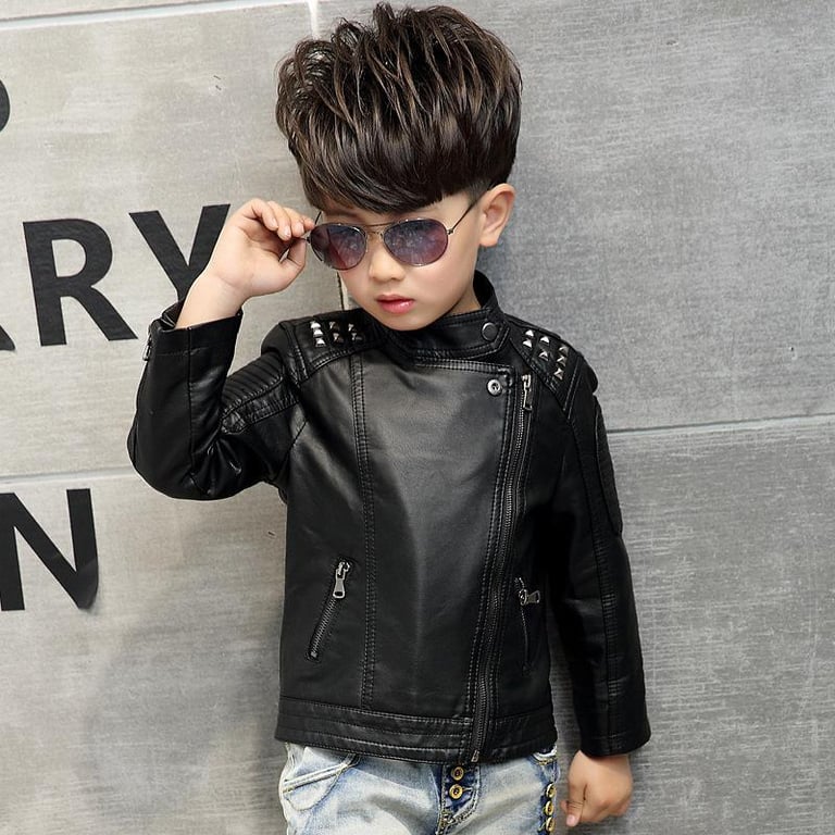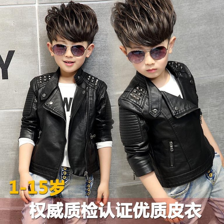 boys coat children's pu jacket fashion kid outwear solid color long sleeve Casual motorcycle jacket spring autumn rivet cool