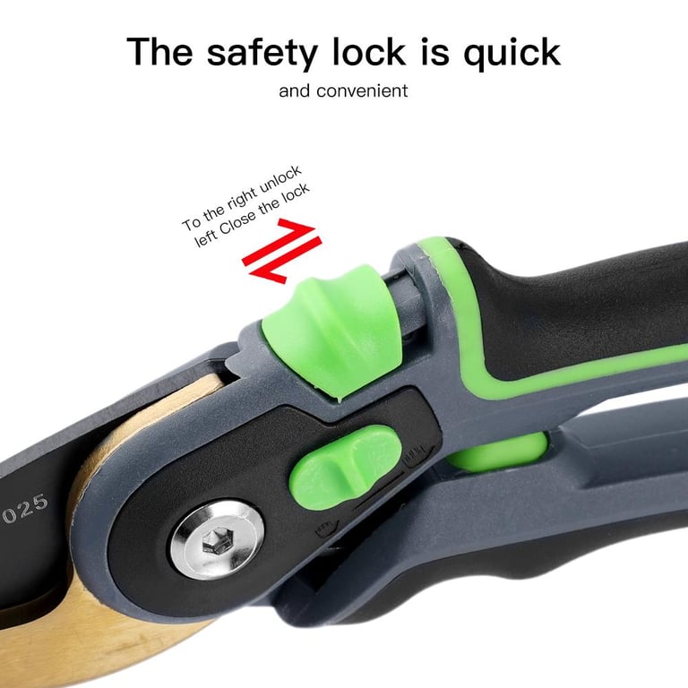 \r\n\r\nSAFE: This garden shears features a unique operated safety lock to protect you from accidentally cutting your finger and also protect the blades when not in use. An essential add-on to keep the shears claw away from the reach of kids. The sharp blade can help you pruning at home or in the garden without harming the plants. After use, wipe the blade and place it in a dry.