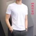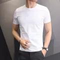 Men's Short-Sleeved Solid Color T-shirt Tight round Neck Large Size T-shirt Bottoming Shirt Half-Sleeved Pure White Black Social Guy Men