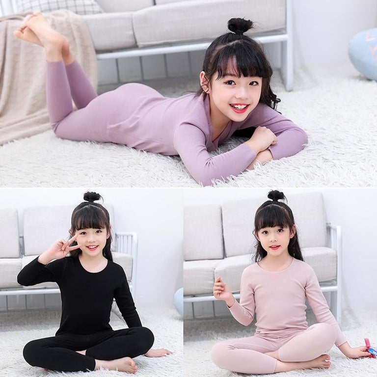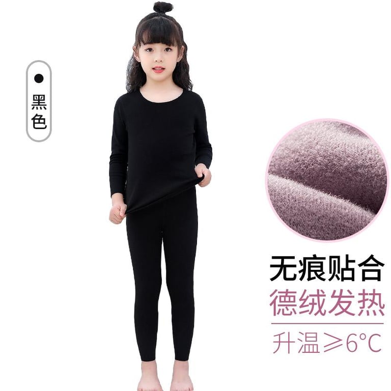 Girls' Thermal Underwear Suit Children's Dralon Heating Seamless Inner Wear Medium and Big Children's Autumn and Winter Fleece-Lined Heattech Long Johns
