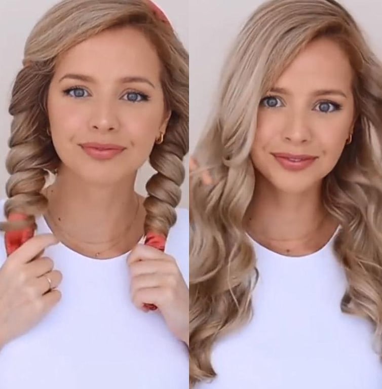 \nFirstly, start with slightly damp hair, lightly dampening the dry hair with a spray bottle or wet brush. Or drying your hair to slightly damp after shower. Secondly, start braiding the hair from one side, and then wind it around this curling roller. Finally, when the hair is braided to the end, wind it with scrunchies.