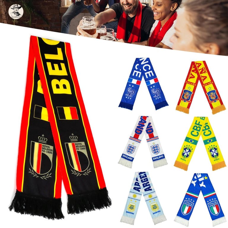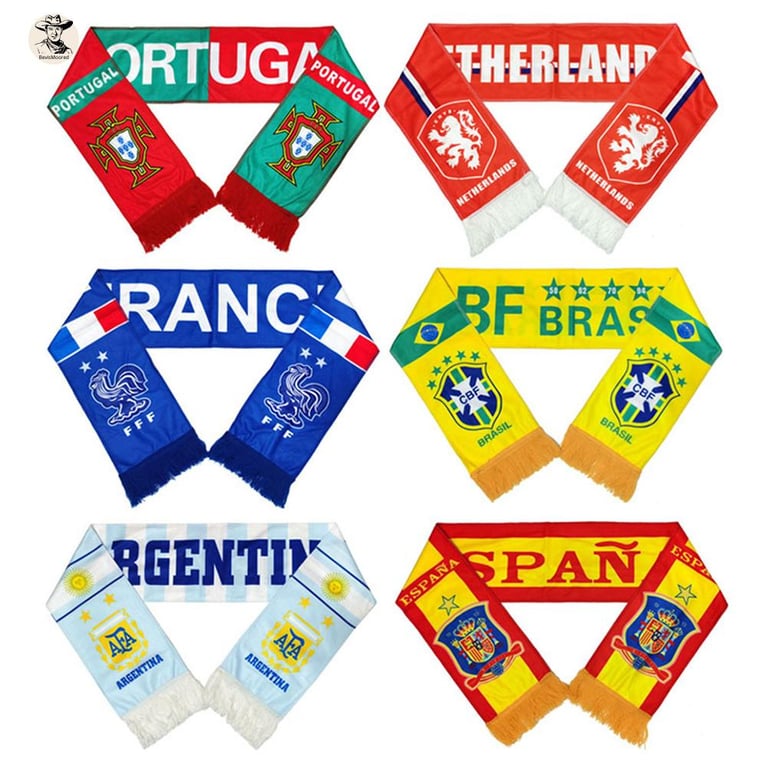 BEV Football Scarf with Tassel Soccers Scarf Fans Souvenirs for Sport Games Eautifully Printed Scarves Sports Match Scarves World Cup Flag Cotton Scarf