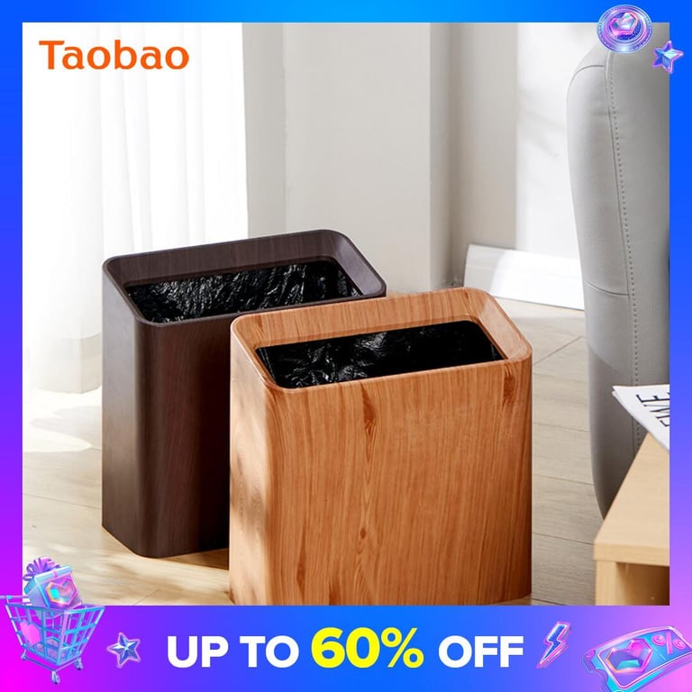 Retro Trash Can Household Living Room Rectangular Gap Bucket Kitchen Bedroom Bathroom Uncovered Chinese Large Paper Basket