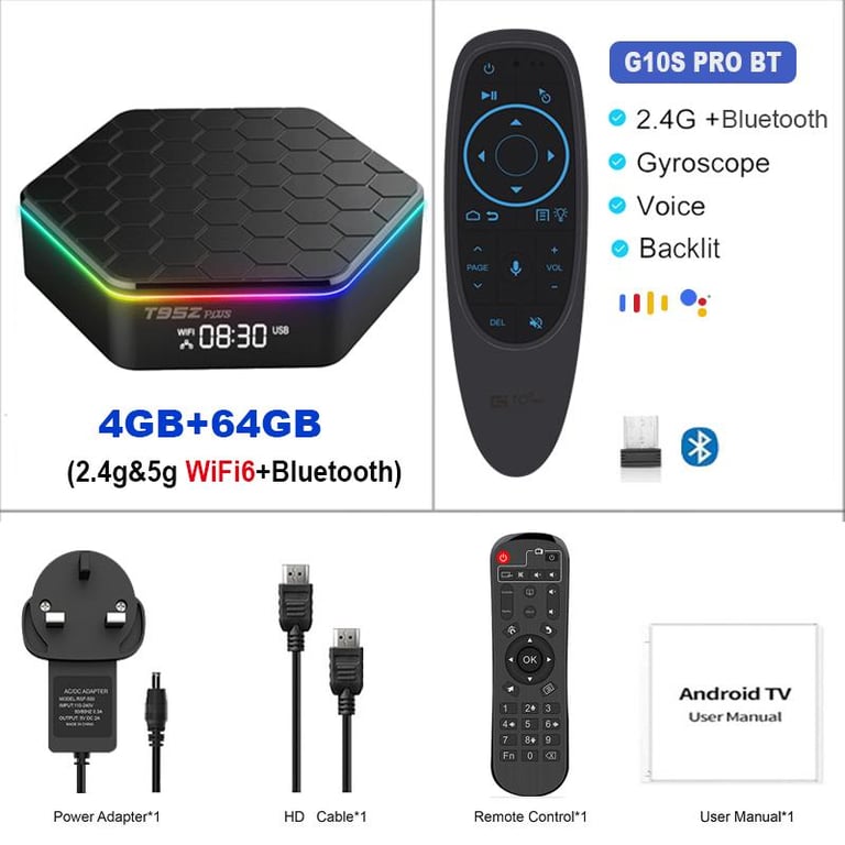 New T95Z PLUS Android 12 TV Box Allwinner H618 Quad Core Cortex A53 6K HD 2.4G&5G WiFi6 Bluetooth 4GB 32GB 64GB 6K Ultra HD VP9 with RGB Light Smart Media Player Support Voice Assistant 2022 Set Top Box