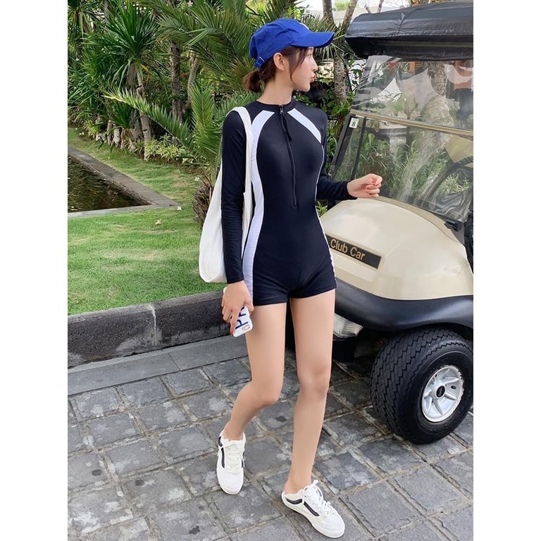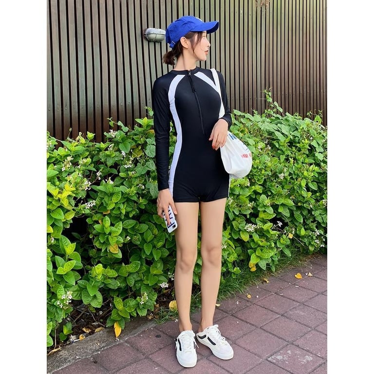 2022 summer new sports women's swimsuit women's conservative slim belly cover one-piece long-sleeved sunscreen hot spring swimming suit swimming suits for women swimwear swim suit set dress pants on sale