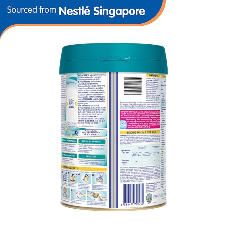 2'-FL (2'-Fucosyllactose) to support the child’s natural defenses, together with Iron and Zinc.