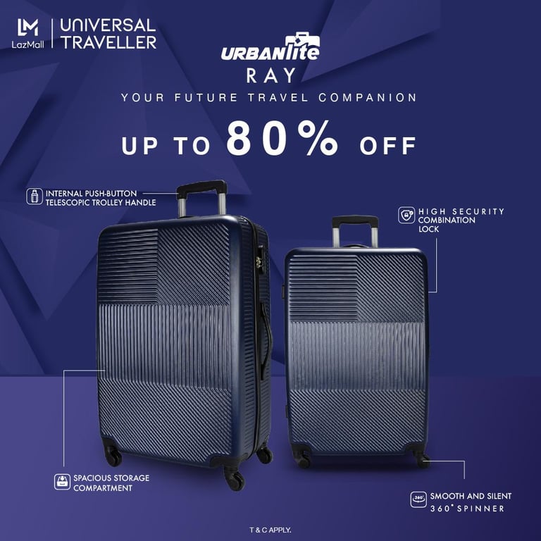 [SG Ready Stock] URBANlite Rayer 20/24/28 inch 360° Spinner 8 Wheels ABS Hard Case Luggage Delivery Within 3 Days By Universal Traveller