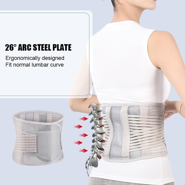 - 4 supporting steel plates and double pressure belts help the lumbar spine return to normal curvature, relieve lumbar compression and avoid secondary injury.
