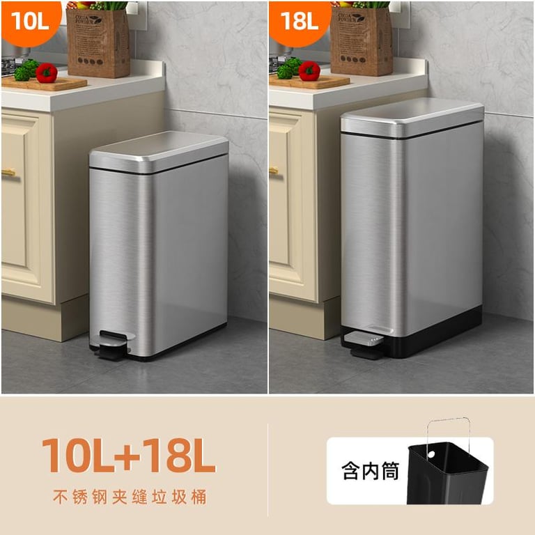 Kitchen Trash Can Household Pedal-Type Gap Toilet Bathroom Living Room Light Luxury Stainless Steel Large Capacity with Lid
