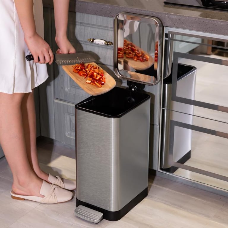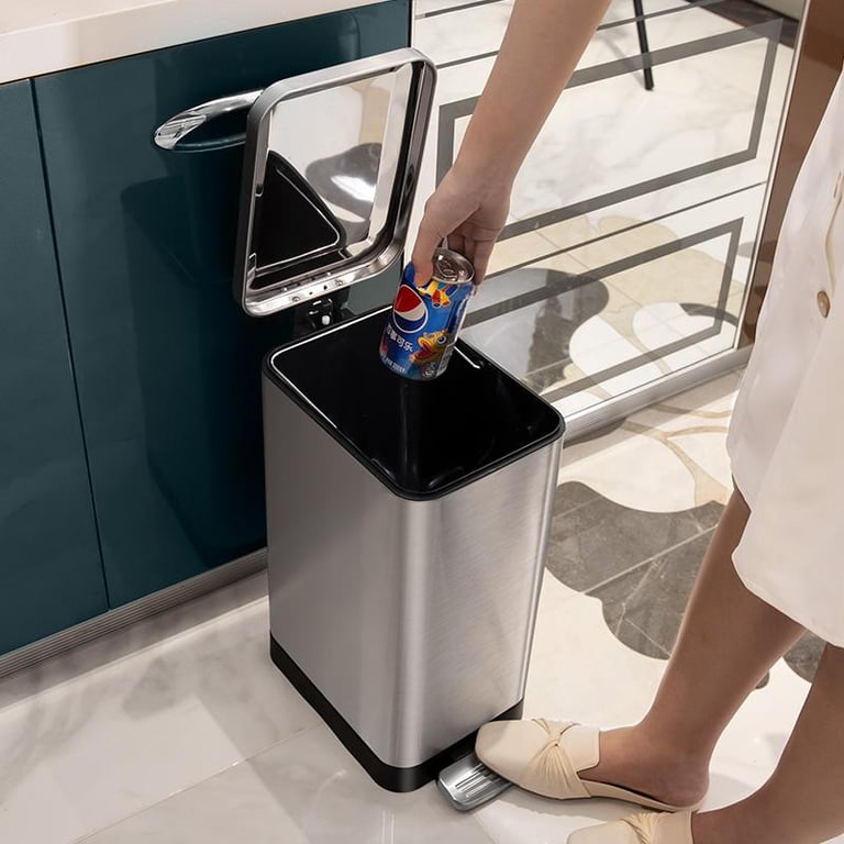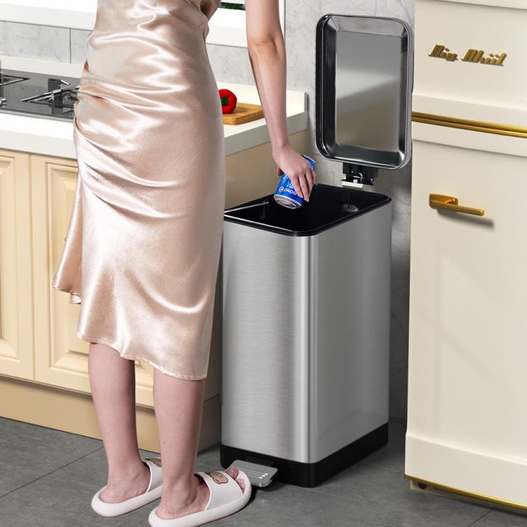 Kitchen Stainless Steel Pedal Trash Can Household Living Room with Lid Large Covered Commercial Large Capacity Bedroom Light Luxury