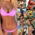 Pick me up Shop Hot Women Fashion Swimming Suit Solid Color Two-piece Strap Backless Beach Bikini Swimwear Bathing Bikini Set Bra Push-up Suit
