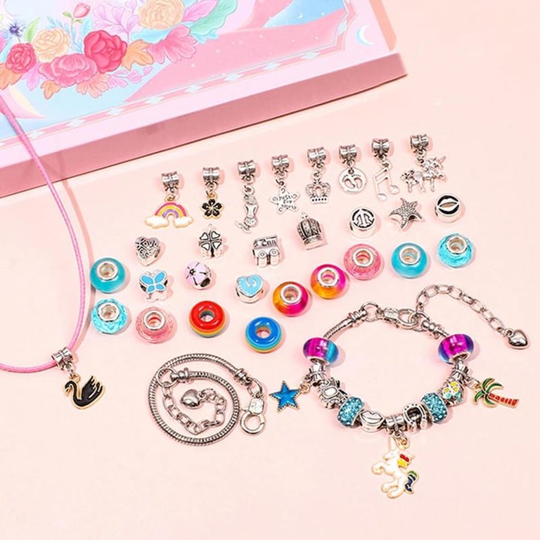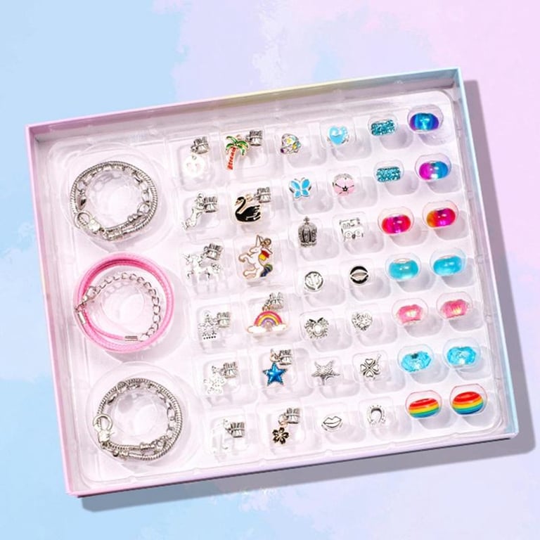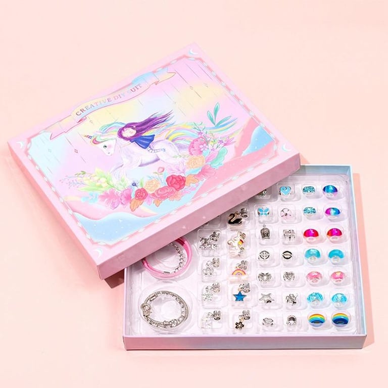 43Pcs Christmas Unicorn Themed Diy Charm Bracelet Making Kit Christmas Holiday Advent Calendar Xmas Surprise Gift For Girls Boys Kids Teens