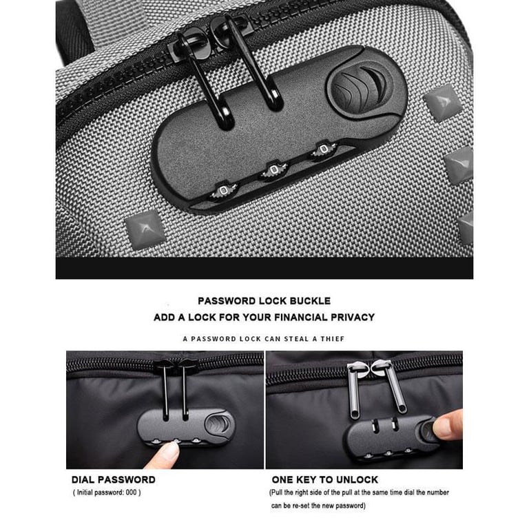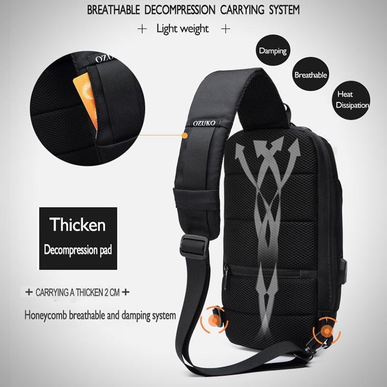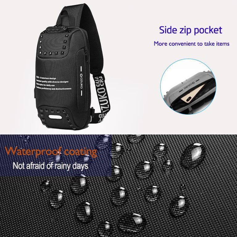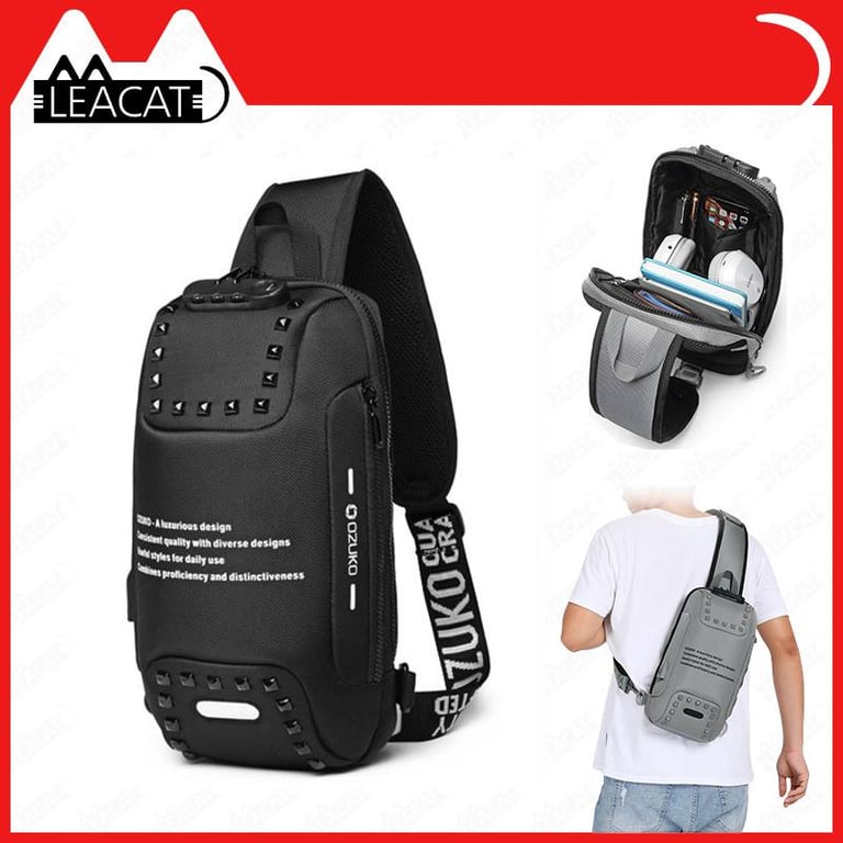 OZUKO New Anti-theft TSA Lock Chest Bag Multi-function Travel Sling Shoulder Bag USB Charging Waterproof Crossbody Bag