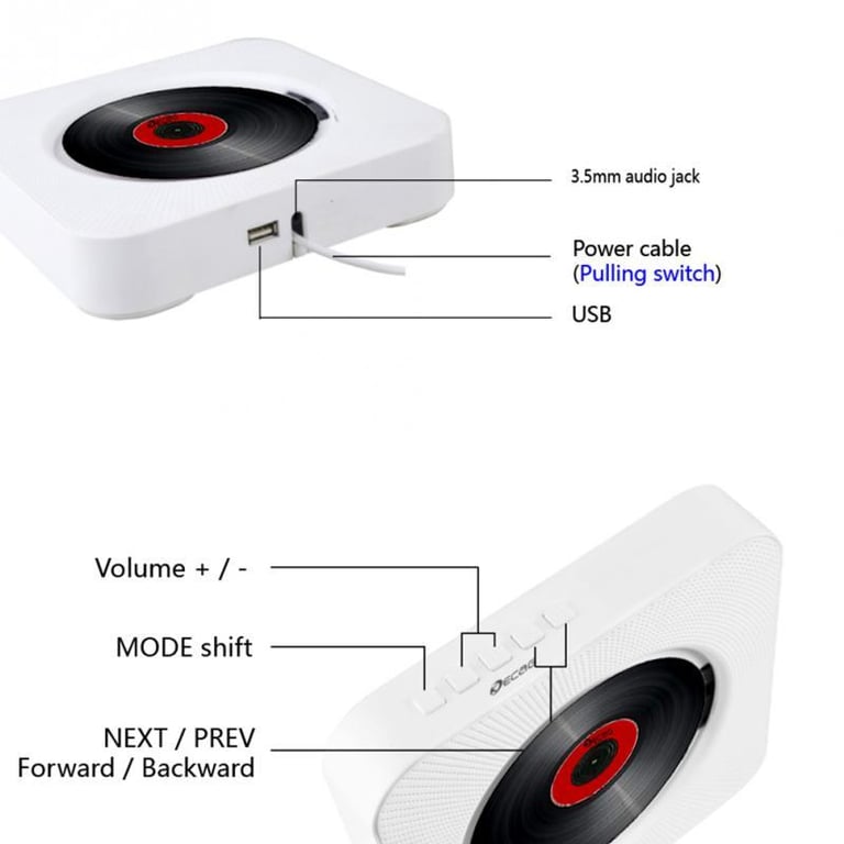 - Portable CD Player: Supports CD, CD-R, CD-RW, CD-MP3, CD-WMA, all kinds of CDs hassle free. Superb sound source decoding makes sound quality better.