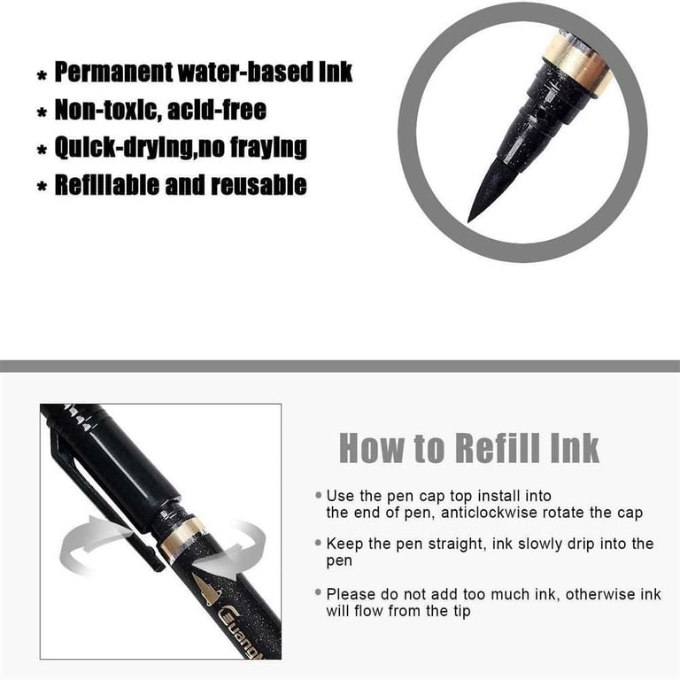 【Reusable and Refillable:】Black refillable calligraphy brush pens, so pens last for much longer, refillable calligraphy ink design also save money for you