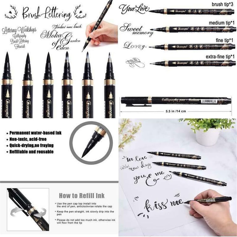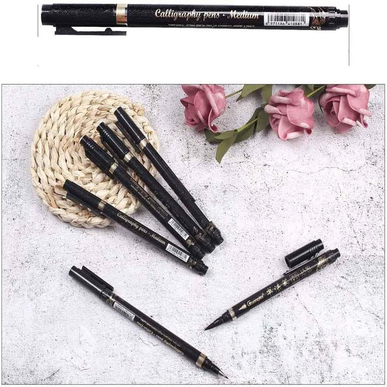 【6pcs Calligraphy Pen:】The caligraphy beginners set Include 1 x extra-fine brush pen, 1 x fine brush pen, 1 x medium brush pen, 3 x brush calligraphy pen